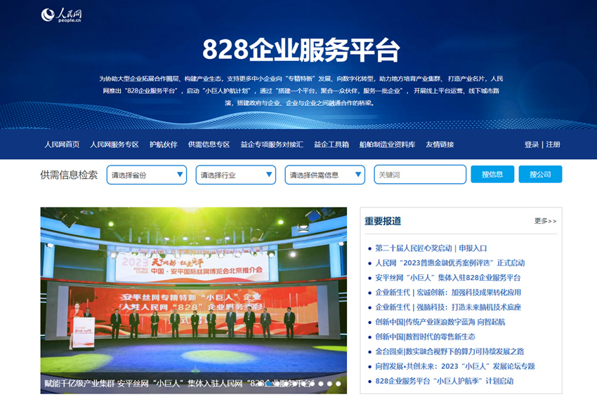 人民網是“網上的人民日報”,媒體傳播矩陣目前覆蓋8.2億網友,憑借著強大的影響力以及秉持“權威、公正、客觀”的新聞價值觀,為廣大網民提供豐富多樣的信息服務。為更好支持中小企業發展,人民網于2022年推出“828企業服務平臺”,啟動“小巨人護航計劃”。通過“搭建一個平臺,聚合一眾伙伴,服務一批企業”,開展線上平臺運營、線下資源對接等,致力于幫助更多中小企業向專精特新“小巨人”企業的轉變,構建政府與企業、企業與企業之間融通合作的橋梁,助力大中小企業的融通發展和地方產業名片打造,實現培育更多專精特新“小巨人”企業的目標。