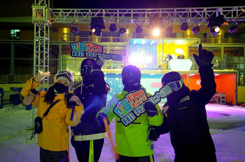 開板當天,北大湖開放了4條雪道、2條魔毯和4條纜車,正式向雪友們發起北大湖專屬的冬日浪漫邀約。