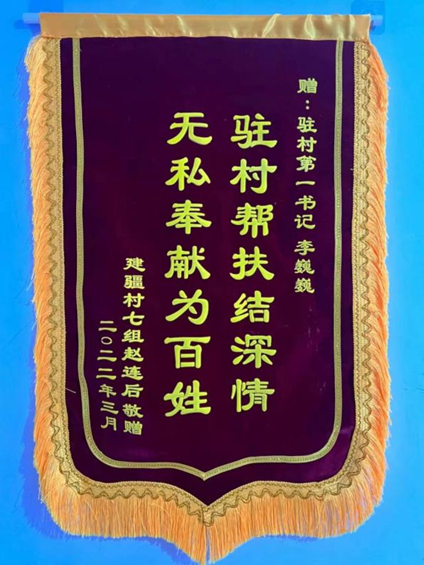 推動一二三產業融合發展是促進農民增產增收的法寶。為了幫專業戶爭取創業貸款,李巍巍親自做擔保,建成中草藥加工室。2022年,該農戶增收4萬余元,并為村民提供了500多個臨時就業崗位;2023年,加工室面積又擴大40平方米,收入比去年增加了5萬元?!榜v村幫扶結深情,無私奉獻為百姓”。錦旗上的每一個字都表達著村民對李巍巍無盡的感激之情。