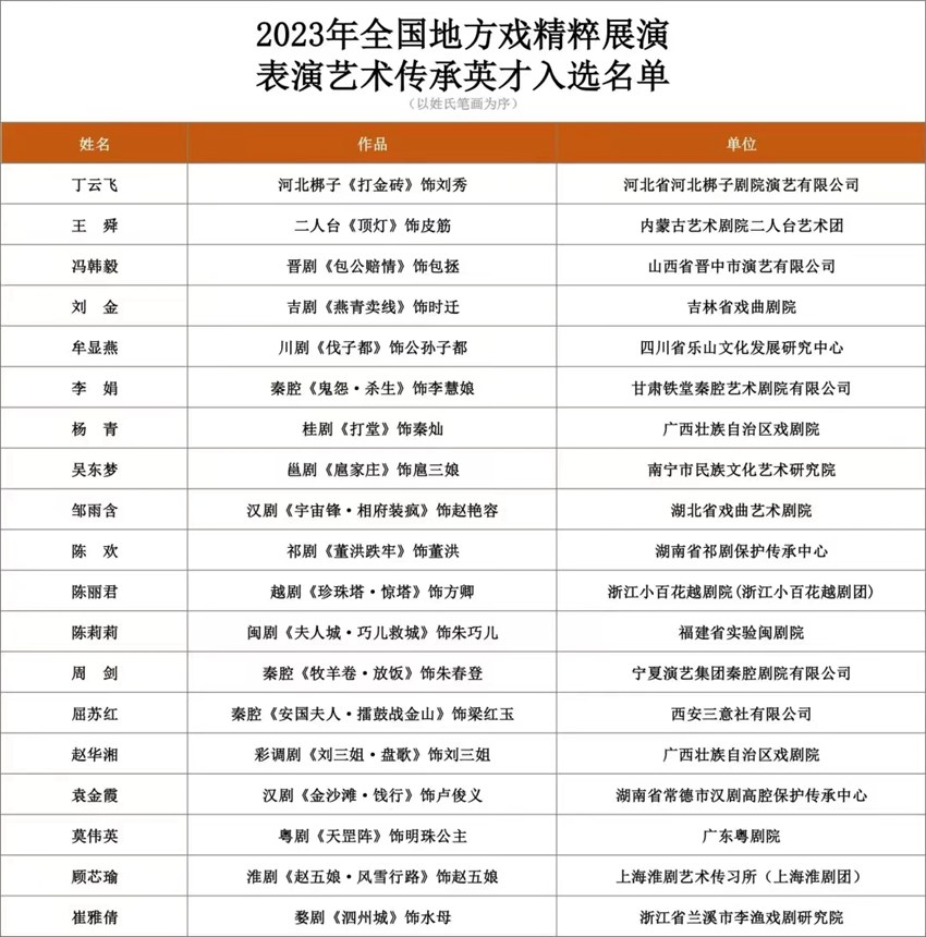 12月8日晚,2023年全國地方戲精粹展演閉幕演出在廣西民族劇院舉行。閉幕式上,主辦方宣布了“2023年全國地方戲精粹展演表演藝術傳承英才”19人名單,由吉林省戲曲劇院吉劇團選派的優秀青年戲曲演員劉金憑借在參演經典吉劇《燕青賣線》中的精彩表現成功入選。