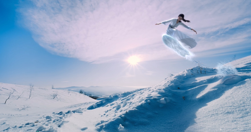 宣傳片開篇,穿過云霧,長白山呈現在大家面前,故事從這里開始,主角“初一”“玄龍”登場。作為冰雪愛好者的“初一”“玄龍”分別來到長白山,各自在冰雪場景以及雪花的觸發下,他們同時感應到了前世碎片的記憶。雪花是記憶的載體,當“初一”眉間的雪花印記點亮時,便開啟了他們跨越千年的冰雪之約。