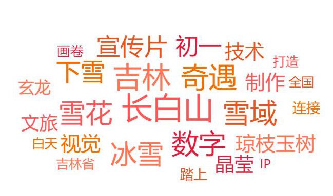 人民網輿情監測系統數據顯示,自1月31日,吉林省文化和旅游廳發布預熱視頻以來,共監測到有關信息188篇,人民網原創報道5篇,33家地方頻道在首頁重點位置推送相關稿件。