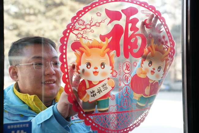 “再高點,下面往右來一點,好嘞!就這樣按住了,我先固定一下?!庇浾邅淼狡諔c加油站時,站長董晟君正在門口貼“福字”?!斑@不馬上過年了嘛,我們想著早點貼出來,年前加油的顧客多,讓大家提前感受到春節的氛圍?!倍删f。