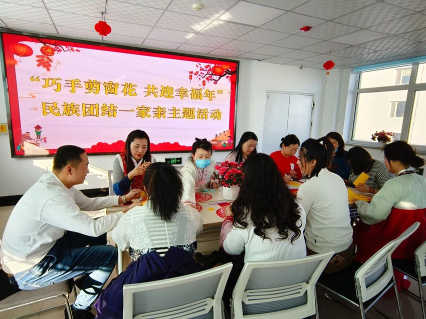 文化浸潤,促進各民族交往交流交融。將民族團結進步教育與各類文化活動結合起來,2月7日,開展了“巧手剪窗花 共迎幸福年”活動。 活動現場,各族居民們歡聚一堂。他們用一雙雙巧手,將紅紙剪成各種精美的窗花,這些窗花不僅展示了居民們的心靈手巧,更傳遞了對美好生活的向往和祝福。社區工作人員則向居民講解了窗花的歷史淵源和文化內涵,讓大家在剪紙的同時,也能感受到中華傳統文化的獨特魅力。此外,現場還設置了窗花展示區和交流互動區,居民們可以相互欣賞作品,分享剪紙心得,增進彼此之間的感情。2月9日,社區志愿者們帶著火紅的福字和精美的窗花,走進了各族群眾家中。他們不僅將滿滿的祝福送到各族群眾家中,還細心地為他們貼上窗花,為每家每戶增添了一份喜慶的節日氣氛。此次活動以“各民族同慶新春,社區送福進萬家”為主題,旨在通過送福字和貼窗花的形式,增進社區居民之間的情感交流,加強各民族之間的團結和友誼。