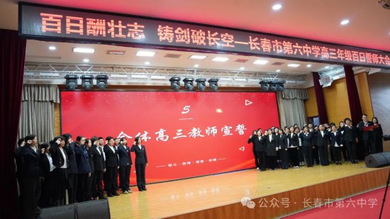 龍馬精神啟新篇,熱辣滾燙逐夢想。為進一步激發高三學子的學習熱忱,堅定沖刺高考的必勝信念,2月27日,長春市第六中學舉行“2024屆高考百日誓師大會”。校長李曉天,黨委書記張建國,副校長楊永忠、薛紅利、汪延德及校辦主任孫爽,高三年級教務處主任寧曉輝與高三師生及家長代表共赴這場青春盛宴,見證這莊嚴而神圣的時刻。