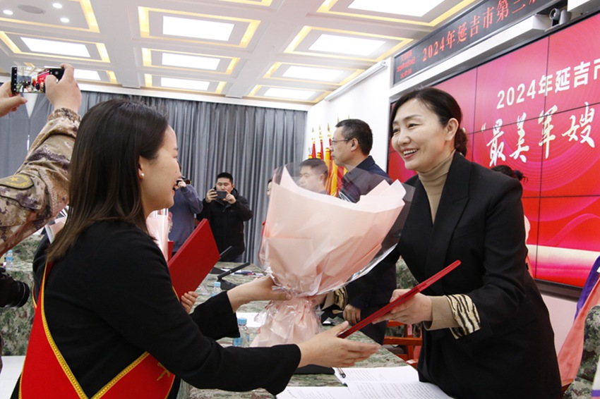 3月4日,在第114個“3·8”國際婦女節即將來臨之際,延吉市舉行2024年第三屆“最美軍嫂”表彰會。市委常委、市人武部陳希勇、州退役軍人事務局機關黨委專職副書記劉玉國、市婦聯主席車玉花、市退役軍人事務局局長王晶,市雙擁工作領導小組部分成員單位、各鎮(街)退役軍人服務站、駐延部隊、軍屬代表等70余人參會。