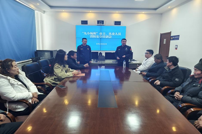 龍崗邊境派出所聯合縣消防救援大隊人員為“九小場所”業主、網格員和民警開展消防培訓。培訓中,對典型火災事故案例進行了深刻分析,讓大家認識到火災防控工作的重要性。結合工作實際分別向“九小場所”業主傳授如何排查安全隱患和用火用電安全、向民警和網格員傳授“九小場所”消防安全檢查注意事項。消防員介紹了常見火災發生原因、防火措施、如何撲救初期火災、應急疏散、自救逃生知識技能等一系列防火安全知識。