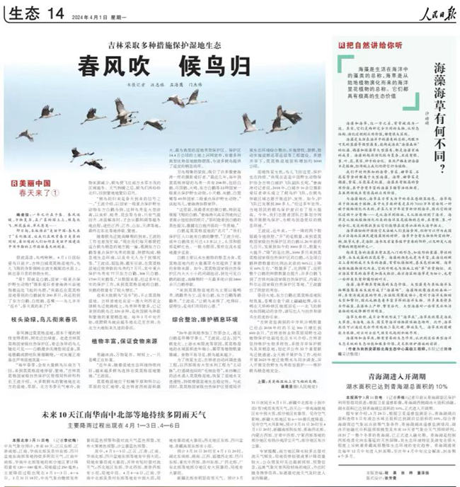 人民日報關注吉林濕地生態:春風吹 候鳥歸