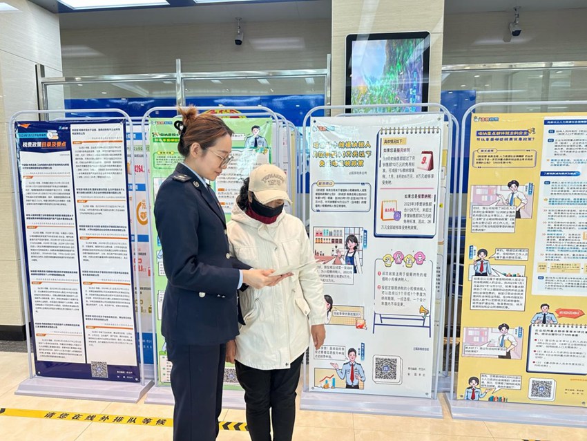 在遼源市西安區,由“青藍潤稅”志愿服務品牌派出的志愿者們組成稅收政策宣講團,以“我為群眾辦實事”為主旨,面向現場的納稅人繳費人開展問題解答,力求講清一條政策、解決一個問題、理清一個流程,為納稅人帶來“辦中能問”“問中有辦”“辦問協同”的全新辦稅體驗,推動稅費服務更便捷。