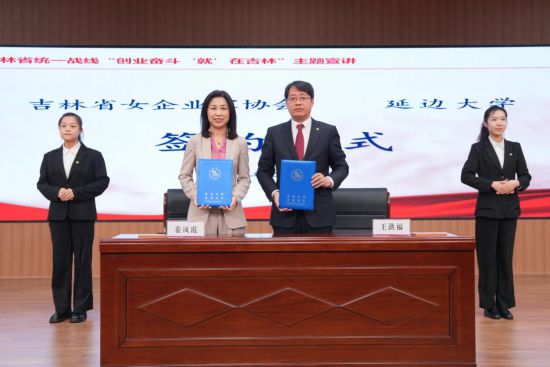 省女企業家協會執行會長姜鳳霞代表協會,與延邊大學就人才培養、產學研融合以及女大學生創業指導、就業實習、社會實踐等簽訂了合作框架協議,通過實施巾幗“引航”計劃,全力為女大學生就業創業搭建平臺、創造條件、提供服務。
