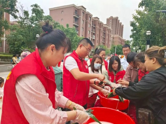 相關工作人員組織轄區退役軍人、軍屬、派出所民警、稅務局工作人員和轄區志愿者、熱心群眾,共同參與了端午節包粽子活動。