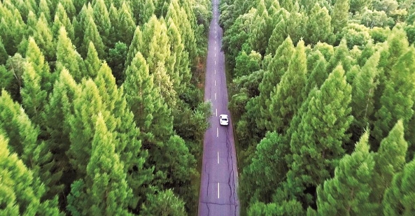 路線全長14.5公里,由村道和鄉道組成,起點位于長伊公路與建國村交會處,終點為伊溪濕地公園出口。進入該路段,仿佛走進了一條生機盎然的綠色長廊,道路兩旁綠樹成蔭、層林疊翠,農田村莊被綠樹環抱,田園風光、自然之美盡收眼中,充滿詩情畫意。