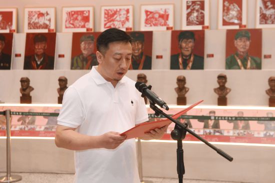 為慶祝中國人民解放軍建軍97周年,喜迎中華人民共和國成立75周年,深入學習貫徹落實黨的二十屆三中全會精神,8月1日,由吉林省退役軍人事務廳、中共吉林省委宣傳部、吉林省軍區政治工作局、吉林省文學藝術界聯合會共同舉辦的吉林省“喜迎中華人民共和國成立75周年 兵心永向黨”主題文藝作品展在省圖書館開幕。省退役軍人事務廳廳長萬春江、省委宣傳部一級巡視員張世文、省退役軍人事務廳副廳長王繼才、省軍區政治工作局大校副主任黃青杰、省文學藝術界聯合會秘書長房國軍等主辦方、承辦方領導參加開幕式。