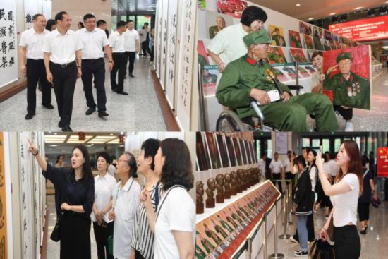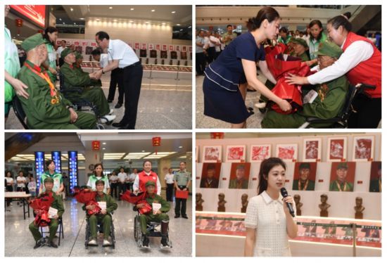 參加開幕式的領導、嘉賓看望老兵,大學生代表張婧?,F場演講老兵紅色故事。
