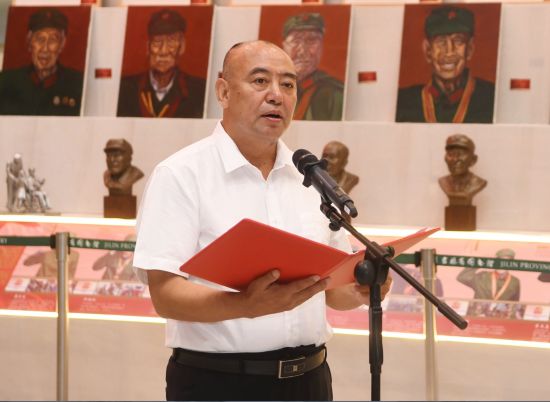 省退役軍人事務廳廳長萬春江代表主辦方致辭。萬春江表示,全國退役軍人工作會議在北京召開,習近平總書記對退役軍人工作作出重要指示強調,退役軍人是黨和國家的寶貴財富,是推進中國式現代化的重要力量,退役軍人工作事關改革發展穩定和強軍興軍事業。革命戰爭年代,數十萬吉林兒女勇赴國難、血灑疆場,為建立新中國,為保衛紅色政權作出卓越貢獻。主辦方連續第6年開展主題文藝作品展覽活動,旨在用藝術創作形式展現英雄形象、講述革命故事、傳承紅色精神。全省退役軍人事務系統要以此次文藝作品展活動為契機,積極發揮退役軍人領域文化資源優勢,不斷推動退役軍人文化發展進步,讓紅色文化全方位融入退役軍人工作,唱響主旋律、弘揚正能量,把英雄精神植根于思想深處、見諸于實際行動,激勵引領全省廣大退役軍人和退役軍人工作者,以昂揚的革命斗志、頑強的進取精神,擔當作為、再立新功。