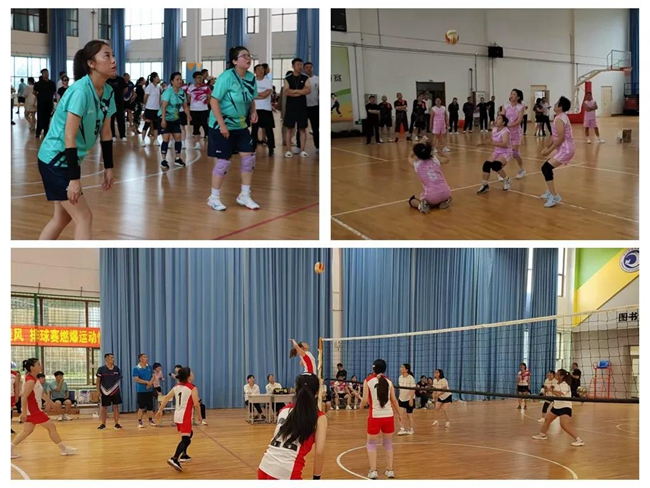 隨著裁判員的哨聲響起,身著不同顏色隊服的參賽運動員們在賽場上盡情地揮灑汗水,或騰空扣殺、或臥蹲墊球、或躍起攔網……一次次全力扣殺不時博得觀眾高聲喝彩,一次次奮力起跳成為一道道靚麗風景,一次次飛身救球不斷將比賽推向高潮。賽事中,穿插了來自六家單位精彩的團體健身操表演,現場氣氛既緊張又熱烈,高昂的歡呼聲、吶喊聲、助威聲、叫好聲此起彼伏,催人奮進,氣氛熱烈而文明。