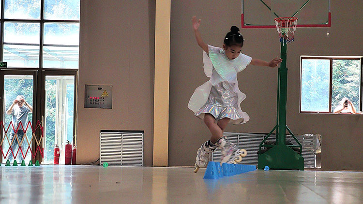 比賽現場,隨著裁判的一聲令下,運動員們以最快的速度起滑,壓低身子,飛馳向前,全力朝向終點,速度過樁、花式繞樁、花式對抗、花式剎?!麄兩磔p如燕,爭分奪秒,矯健的身影、靈巧的動作將速度與激情體現的淋漓盡致。場外教練員、家長群眾呼聲陣陣,場面熱烈,呈現了一場力與美的視覺盛宴。