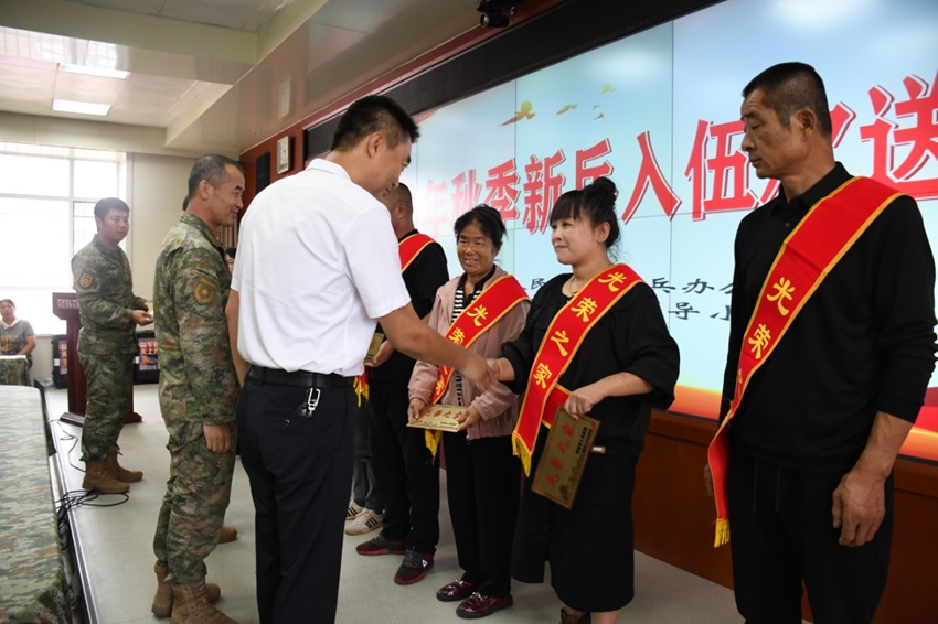 長白縣人武部、長白縣民政和退役軍人事務局聯合向新兵家長發放“光榮之家”光榮牌并宣講了軍人軍屬優待政策。