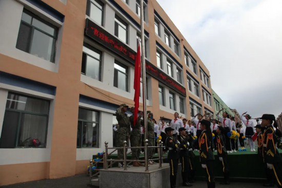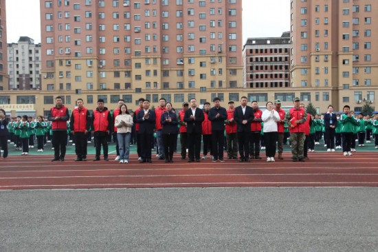 活動中,全校731名師生莊嚴肅立,3名吉行軍志愿服務隊隊員和13名城西小學學生組成國旗護衛隊,邁著鏗鏘有力、整齊劃一的步伐,護送國旗升旗手來到了旗桿下,在雄壯的《義勇軍進行曲》中,將鮮艷的五星紅旗冉冉升起。