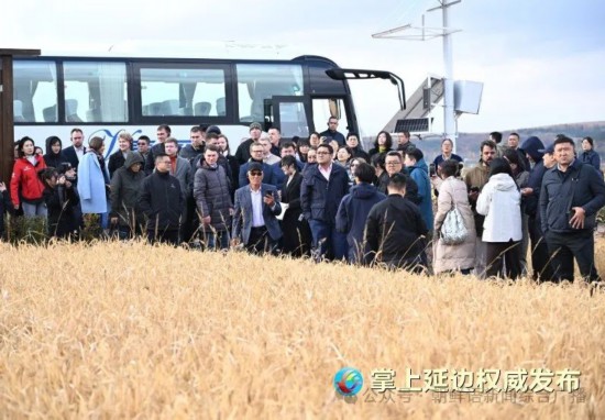 在光東村,外賓們穿行在金黃色的稻田中,時而蹲下身來查看飽滿的稻穗,時而拿起手機記錄下豐收的景象。村史館里,他們認真了解了習近平總書記在光東村的視察過程。在民宿,大家了解了朝鮮族民居的特點,并紛紛為村里整潔的居住環境點贊。哈薩克斯坦“光明道路”民主黨副主席謝里克·葉魯巴耶夫說:“今天,我們了解到光東村的水稻非常好,尤其是習近平總書記曾來到這里考察,可見延邊州委、州政府的民生工作做得非常扎實。祝光東村的人民生活幸福,也祝村里的種植產業越來越好!”來自韓國的金峻范是北京韓半島科技有限公司董事長,他用流利的漢語稱贊:“金黃色的稻田,拍照非常好看!尤其是那個紅色的大字、習近平總書記說的‘全面小康一個也不能少,哪個少數民族也不能少’,讓我感受到了中華民族團結一家親的力量!”