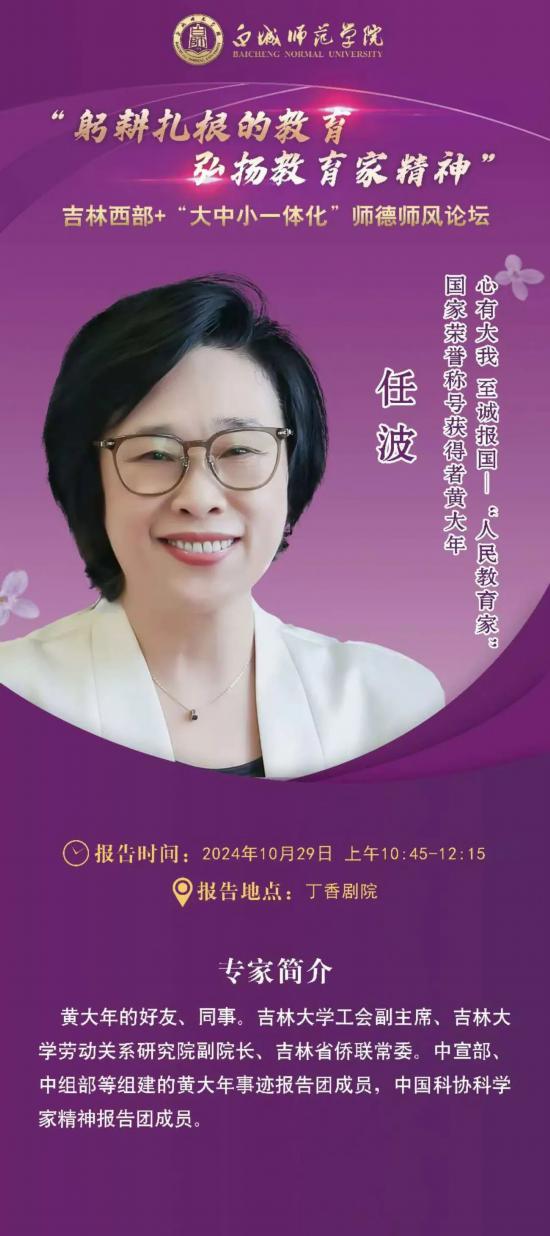 由白城師范學院與白城市教育局聯合主辦,“吉林西部+”校地協同創新聯盟成員單位協辦的“躬耕扎根的教育 弘揚教育家精神”吉林西部+“大中小一體化”師德師風論壇,將于2024年10月29日舉辦。