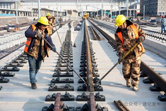 該集團所承擔的鋪軌施工任務,共設松江河鋪軌基地和通化西鋪軌通道兩個作業面。其中,通化西鋪軌通道于10月18日開始鋪軌作業,投入作業人員近200人,采取2班倒方式作業。為保證通化西鋪軌工作順利進行,工程項目部多次召開協調會議,不斷優化施工組織方案,嚴格控制各環節施工技術指標,確保工程質量和施工安全。同時,工程項目部統籌安排工期,預計管段內鋪軌施工任務將于11月底全部完成,2025年4月份完成鋼軌焊接任務。