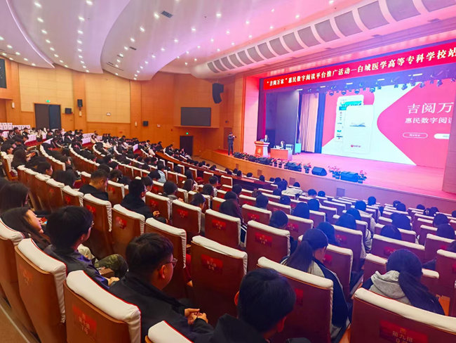 活動中,“吉閱萬家”數字閱讀平臺推廣組走進白城醫學高等??茖W校和白城市圖書館,向學生和讀者講解平臺的資源類型、使用方法,引導大家拿出手機掃描小程序進行學習,為廣大群眾線上閱讀提供了方便,助力廣大群眾理論研究、科研學習。