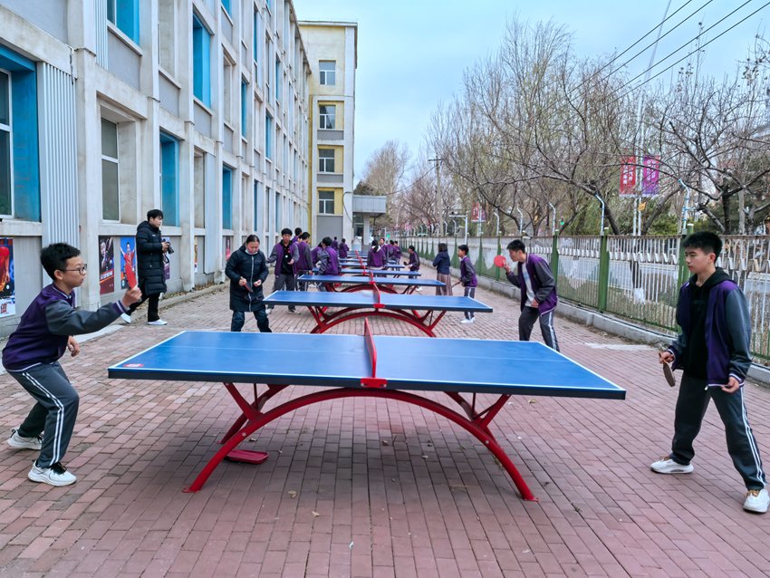 人民網長春11月11日電 (記者王海躍)“再用點勁兒?!薄白儞Q一下球的落點?!薄皩瓦@樣,非常好,繼續保持?!薄L春市汽開區第十中學教學樓和學校圍欄中間的空地,十個乒乓球臺一字排開,一只只小白球在球臺上左右彈跳,好似在快樂舞蹈。因為有了體育老師的專業指導,學生們在課間既獲得了快樂,又提升了球技。