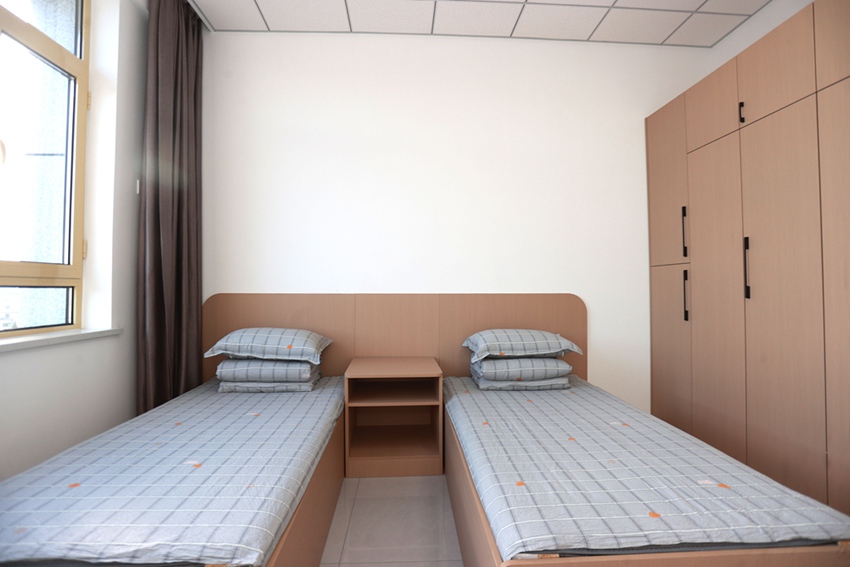 在住宿方面,提供“酒店式”的優質服務,2人一間,室內配有衣柜、獨立衛生間,全天候熱水供應。在營養膳食方面,以“健康膳食環境”為根本宗旨,由專業營養師對一日三餐精準把控,做到營養均衡,葷素搭配,早、晚餐3菜1湯,午餐四菜一湯。每日提供3次間食,主要以奶制品、餅干、水果、面包為主。