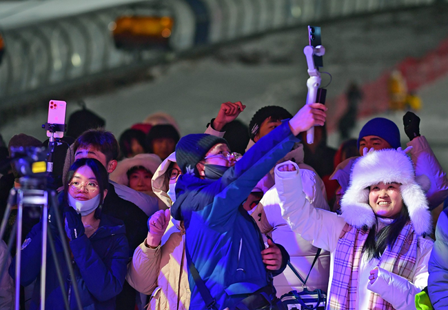 金曲串燒、劍舞魔術精彩不斷。一首《為吉林鼓掌》深情唱出對家鄉的熱愛與贊美,也向全球雪友發出來江城擁抱冰雪世界、暢滑頂級雪道的誠摯邀請?!惰F血丹心》《海闊天空》《刀劍如夢》等廣為傳唱的金曲響徹舞臺,觀眾情不自禁地隨著旋律揮手搖擺、放聲合唱。市二次元文化創意協會演員身著漢服、手持扇子,COSPLAY熱播劇《永夜星河》中的角色,在紛揚的雪花中翩然起舞。觀眾紛紛舉起手機,記錄美好瞬間。