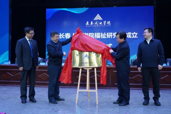 與會相關領導共同為長春人文學院福祉研究院揭牌,作為國內高校成立的首個福祉學研究機構,旨在全面加強中國福祉學研究、學科建設和人才培養工作。