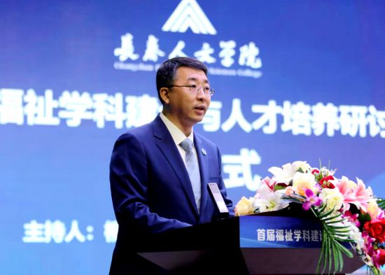 學校校長張興海代表學校致辭,他介紹了學校福祉學科的建設情況,系統梳理了中國福祉學的發展脈絡,詳細闡述了馬克思主義視閾下的福祉理論體系和學科建設構想。
