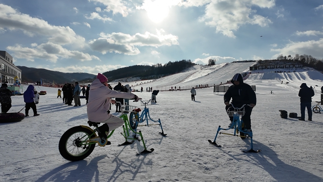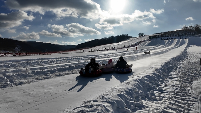 在戲雪樂園內,風馳電掣的雪地摩托車讓人領略速度的快感,俯沖而下的滑雪圈載著一路歡樂的笑聲,冰上自行車騎行讓人流連忘返……游客在這里盡情享受冰雪帶來的放松與樂趣。