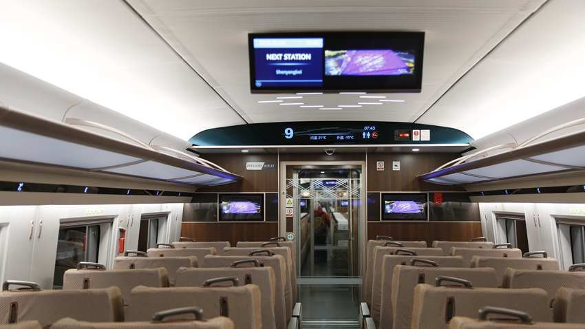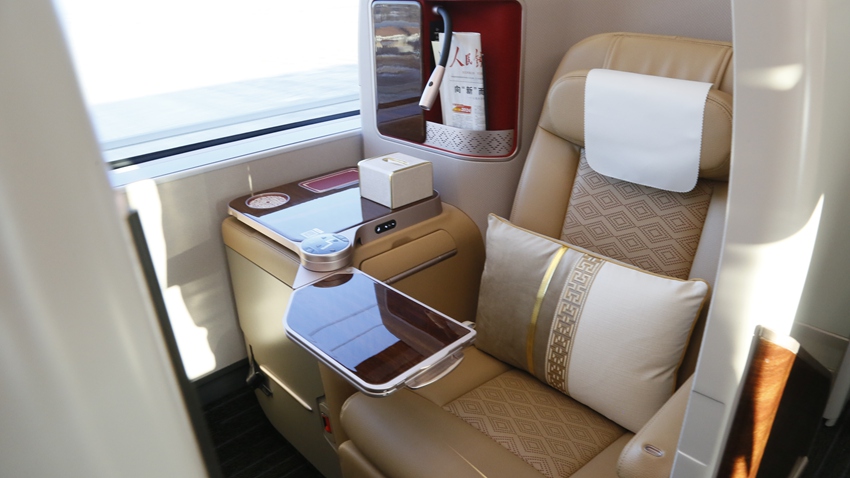 從內部環境看,“智能復興號”配備了更加舒適的座椅、更先進的空調系統、更高規格的音響和電影娛樂系統。在一等座和二等座增加了USB充電接口,適度增加小桌板的凹陷深度;為商務座車廂配備智能交互終端和智能照明系統等,可以更好地滿足不同旅客的出行需求。