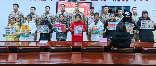 活動中,孩子們向兵叔叔們展示了精心制作的《新春祝?!で榕娙塑妼傩摹肺⒁曨l,將寫有“致敬最可愛的人”“戍邊守疆·保家衛國”“新年快樂、山河守護人”的圖畫送給兵叔叔們,表達孩子們對兵叔叔們的崇高敬意和新春祝福。孩子們觀看了兵叔叔們演練的軍體拳后,紛紛為兵叔叔們整齊劃一的動作和磅礴的氣勢所感染,對兵叔叔們報以熱烈掌聲,一些孩子還在現場向兵叔叔們學習軍體拳,孩子們有模有樣的模仿動作也贏得了官兵們的掌聲。孩子們還在兵叔叔們的帶領下參觀了營區,近距離感受部隊濃厚的練兵備戰氛圍,沉浸式體驗了多彩的軍營生活,在潛移默化中增強了國防意識,厚植了愛國情懷。