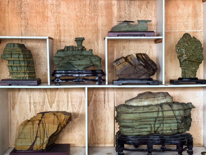 在通化縣,還有一處,擺滿琳瑯滿目松花石產品,這里就是省級創業孵化基地——占地8000平方米的大安鎮松花石文化產業園(松花石實訓基地)。在這里,一批獨具匠心的雕刻大師鉆研探索,用松花石制作出一個又一個精美絕倫的松花石硯作品。