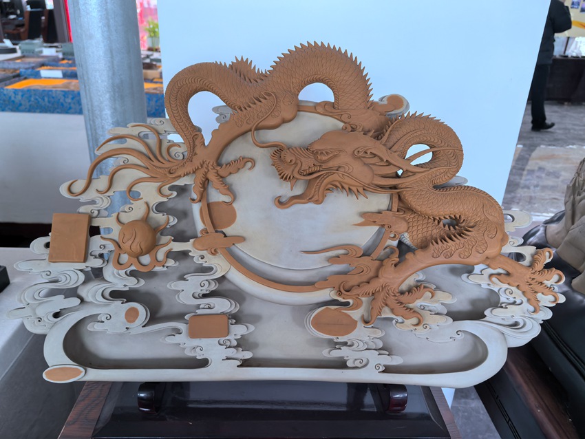 靠著對這份事業的熱愛,憑借寫真、寫實的雕刻風格,逐漸地,擺件、掛件、玉璽、茶臺、茶具等越來越多的松花石產品在張新手中的刻刀下誕生。他將石雕技藝與現代文化元素完美融合,將傳統技藝與現代技術相結合,賦予這些石頭精美的造型和文化傳承的使命。