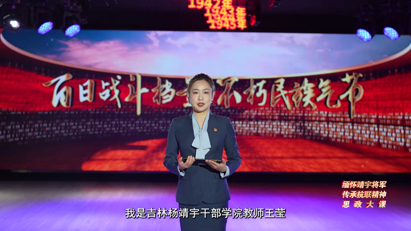 本次思政大課由中共吉林省委教育工委、吉林省教育廳、吉林楊靖宇干部學院聯合人民網共同舉辦。吉林楊靖宇干部學院教研部主任、副教授王瑩,吉林楊靖宇干部學院教研部副職、講師金華彬擔任主講。課程以《百日戰斗檔案 不朽民族氣節——從楊靖宇殉國前百日戰斗檔案看東北抗聯及其偉大精神》為主題,帶領全省學生回顧東北抗聯歷史,緬懷偉大的楊靖宇將軍,深刻感悟東北抗聯精神,汲取磅礴奮進力量。