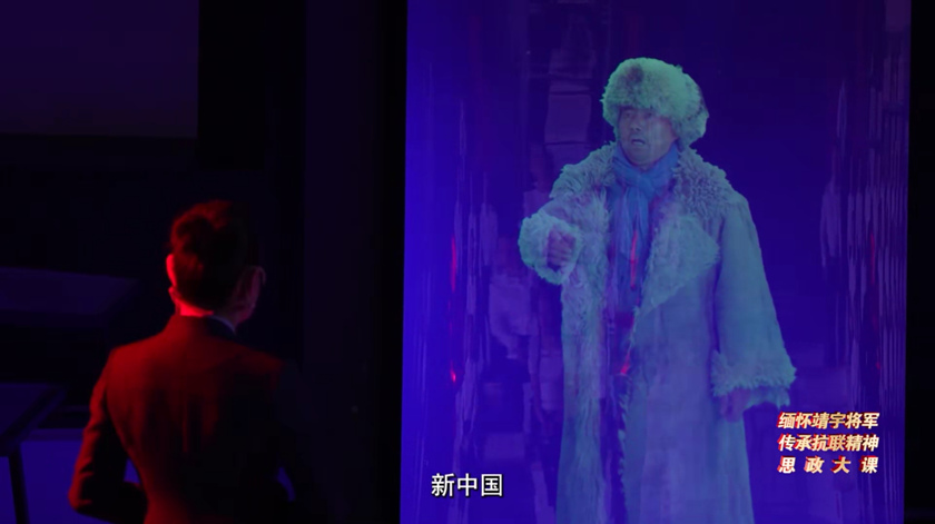 課程最后,王瑩與AI成像的楊靖宇開展了一段“穿越時空的對話”?!皩④?,我們現在國強民富,都能夠有尊嚴地活著,再也沒有人敢欺負我們了!”“是真的嗎?這要是真的,我們那么多,那么多戰士的流血犧牲都值了!真想看看新中國!新時代!”“將軍,是真的,這盛世已如您所愿!這就是我們的新中國!新時代!”