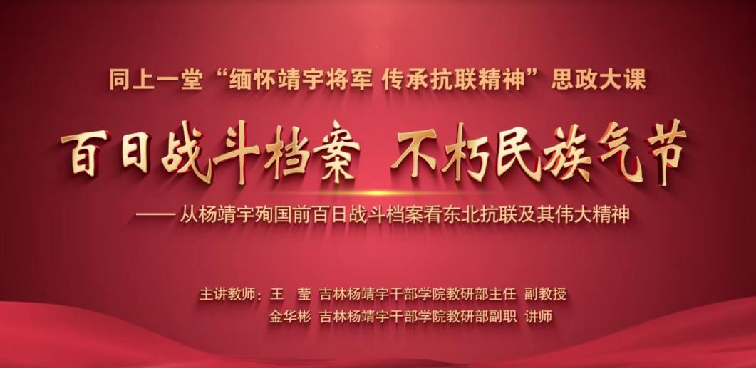本次思政大課的主題是《百日戰斗檔案 不朽民族氣節——從楊靖宇殉國前百日戰斗檔案看東北抗聯及其偉大精神》。課程由吉林楊靖宇干部學院教研部主任、副教授王瑩以及教研部副職、講師金華彬主講。他們通過生動的講解和珍貴的史料,帶領全省大中小學生回顧了東北抗聯十四年的艱苦斗爭歷程,特別是楊靖宇將軍殉國前的百日戰斗檔案,深刻揭示了東北抗聯精神的內涵與價值。