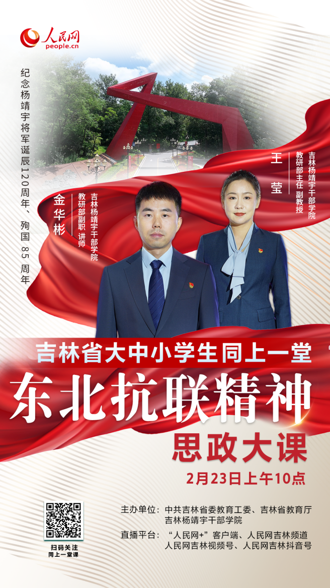 人民網長春2月24日電 (記者馬俊華)2025年2月23日,正值楊靖宇將軍殉國85周年紀念日,中共吉林省委教育工委、吉林省教育廳、吉林楊靖宇干部學院聯合人民網,共同舉辦了一場別開生面的思政大課——“緬懷靖宇將軍 傳承抗聯精神”思政大課。
