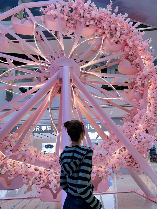 漫步其間,市民游客不僅可以邂逅粉色夢幻之旅,還能感受到自然美學與都市童話的創意融合,粉白櫻花讓心輕盈愉悅,治愈系的摩天輪給予情緒明媚指引。
