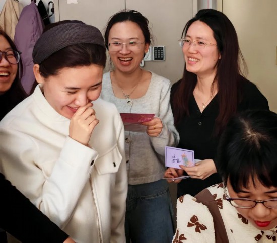 當天下午,一場別出心裁的“趣味賀卡送祝?!被顒踊馃衢_啟。我院黨組為全體女干警精心準備了別具一格的賀卡。這些賀卡正面素雅無字,而賀卡里面卻用便利貼巧妙地寫上了一位男同事的名字。女干警們就像開啟盲盒般抽取賀卡,當抽中卡片的那一刻,驚喜之情溢于言表。