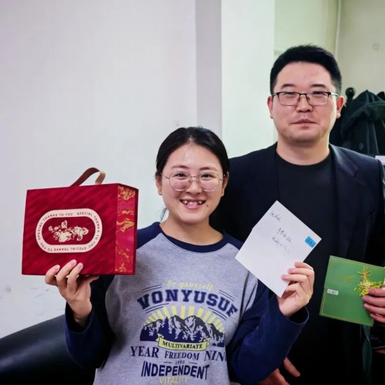 抽中賀卡的女干警,手持這份獨特的幸運,前往對應的男同事處領取節日禮物。而收到賀卡的男同事們,也紛紛化身“暖心使者”,在賀卡上為女干警們寫下專屬的節日祝福。有的祝福真摯感人,鼓勵女干警們在司法工作中繼續綻放光彩;有的詼諧幽默,引得女干警們歡笑連連。一時間,法院內充滿了歡聲笑語,溫馨的氛圍彌漫在每一個角落。