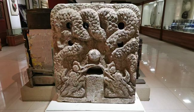 2007年8月,九臺區在其塔木鎮出土了一塊具有歷史意義的文物——皇糧碑。這塊石碑高約0.9米、寬約0.75米。石碑的頂部裝飾有精細的鱗狀花紋,碑身上有6個鏤空的圓孔,二龍戲珠的圖案清晰可見,珠子下方刻著“皇糧”兩個大字。
