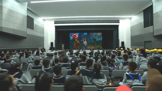 電影學院黨總支副書記白松在活動前對大學生志愿者們強調,“通過這次研學活動,要讓孩子們理解電影既是文化的載體,更是精神的火炬?!痹陔娪皩W院綜合劇場里,當《放牛娃王二小》的經典畫面重現,小觀眾們屏息凝視英雄身影;當《瘋狂動物城》的奇幻場景躍然銀幕,此起彼伏的驚嘆聲織成一片,讓孩子們在光影流轉中觸摸歷史溫度。