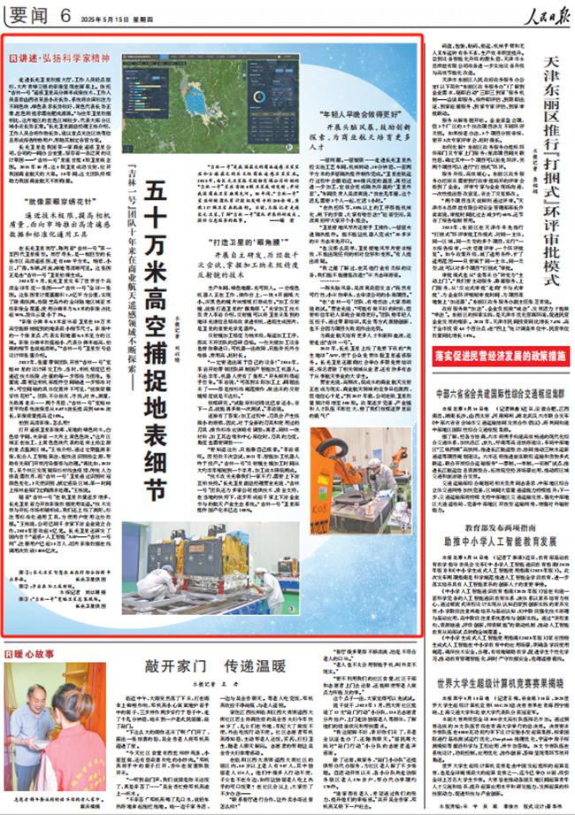 人民日報頭條聚焦“吉林一號”:五十萬米高空捕捉地表細節