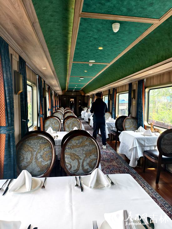 “東北亞長旅號”旅游觀光班列是首個將俄羅斯建筑文化與現代設計手法相融合,結合克里姆林宮、冬宮、夏宮等室內裝飾風格,通過數字化手段,實現多種文化元素與車廂氛圍融合而打造的餐旅列車。此趟列車旅程全長73公里,途經慶榮站、涼水站、密江站、琿春西站等站點,歷時3個多小時。在行駛過程中,可遠觀圖們江獨特的邊疆風貌,近觀俄朝歌舞及魔術表演。同時,可在列車上的非遺手作體驗區,親手觸摸和傳承非物質文化遺產,感受匠人的智慧與匠心。