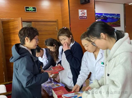 5月19日下午15時,白山市法律援助中心聯合白山市保健院成功舉辦“民法典進醫院 患者隱私共保護”專題普法宣傳活動,白山市法律援助中心李律師作主題宣講,保健院全體醫護人員參與學習,活動現場還向參與者發放《民法典》及各編知識手冊200余份,有效提升了醫務人員法律意識與群眾維權認知。