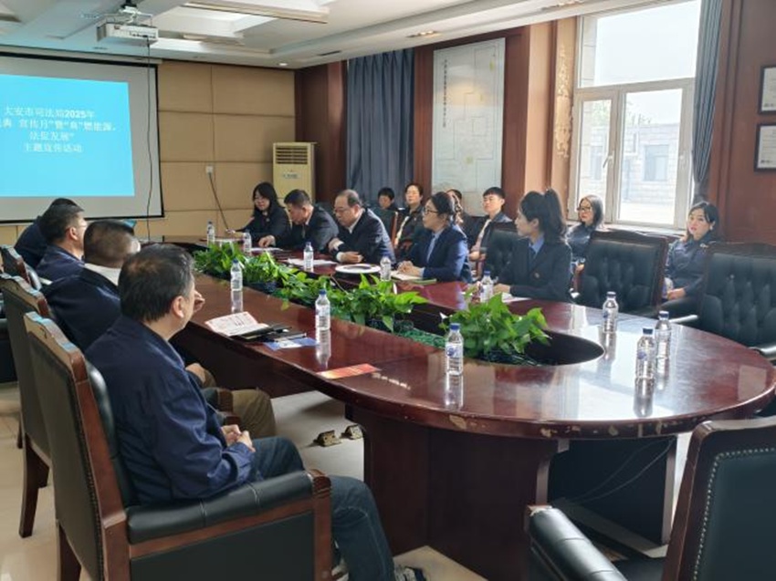 2025年5月是第五個“民法典宣傳月”,為推進民法典走進企業,切實增強企業職工法治意識,營造法治化營商環境。5月20日,大安市司法局聯合市檢察院,來到戈壁能源公司和大安吉電綠氫能源有限公司開展“‘典’燃能源,法促發展”主題普法宣傳活動。